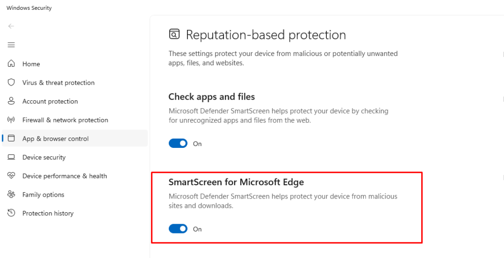Windows includes built-in protection against malicious websites and phishing attempts.