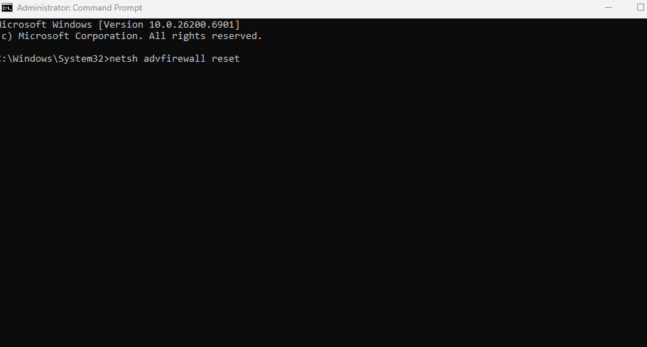 - Type netsh advfirewall reset and press Enter