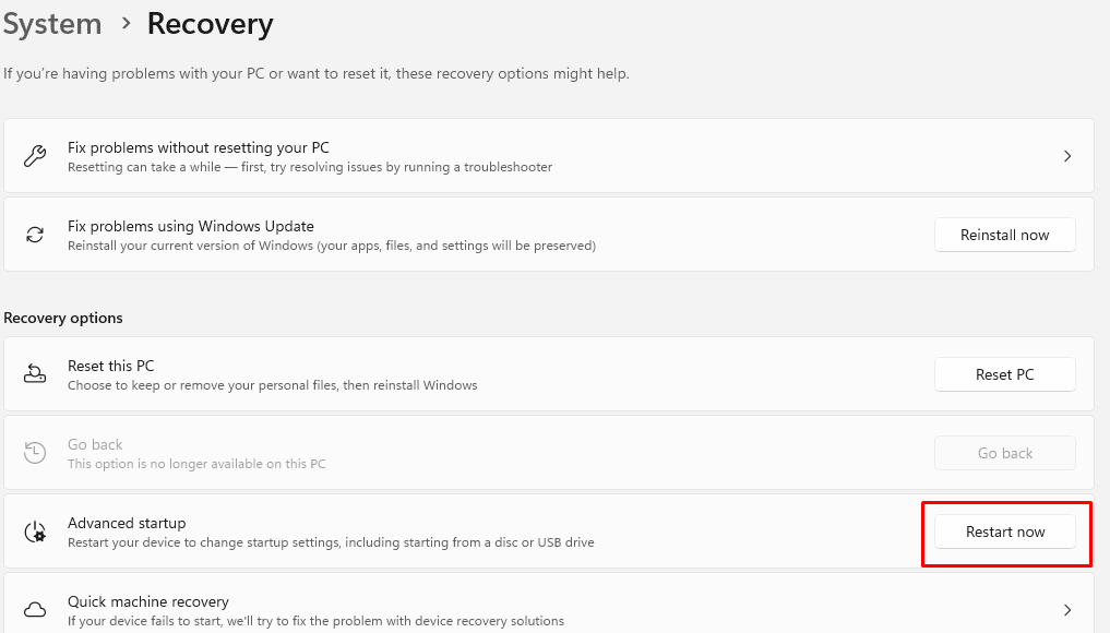 - Choose Troubleshoot > Advanced options > Startup Settings