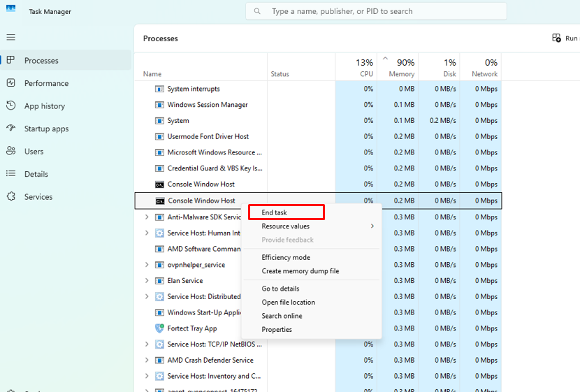 Note that some system processes shouldn’t be terminated. Only end tasks from recognizable applications.