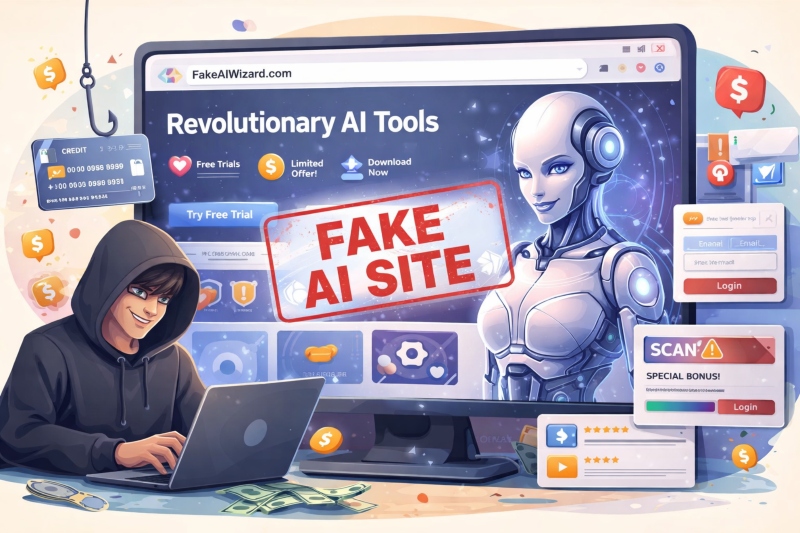 Fake AI websites are online platforms that imitate legitimate AI services. They often promise advanced tools like AI image generators, chatbots, or content creation platforms, but their primary goal is malicious. These sites can collect your login credentials, install malware, or redirect you to phishing pages.