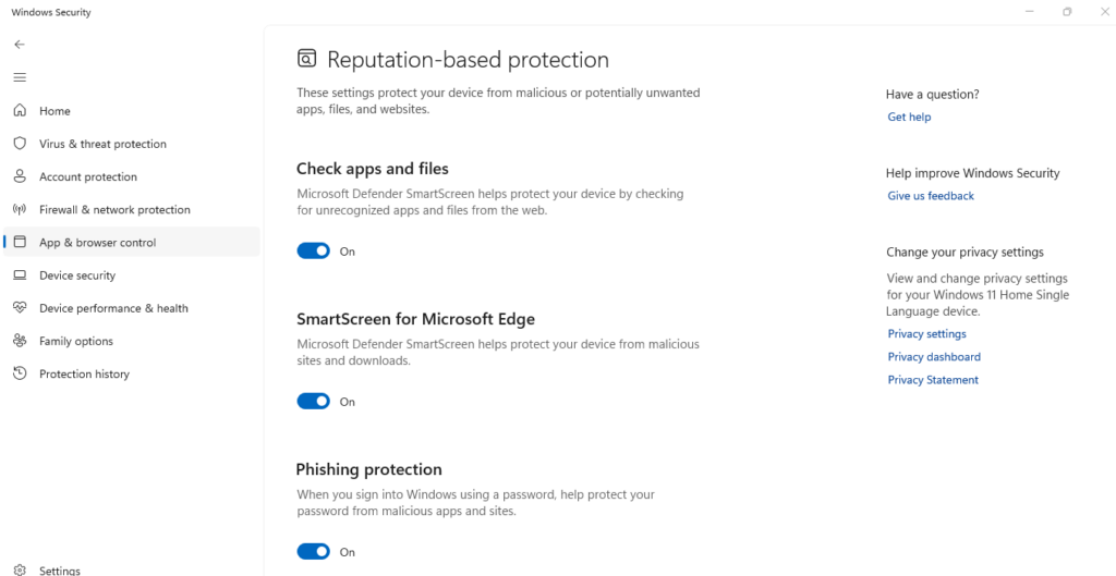 - Under Reputation-based protection, ensure all toggles are turned on