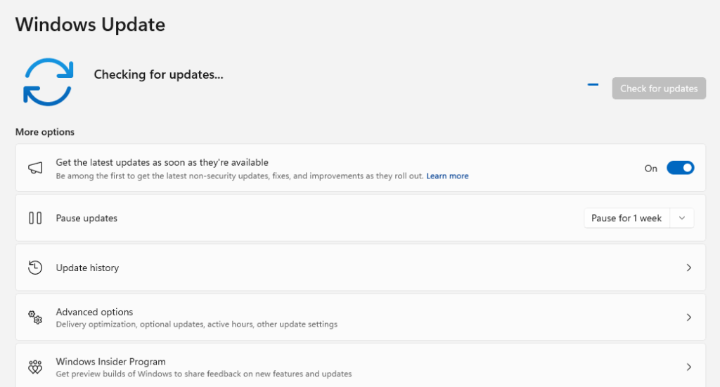 3: Click “Check for updates” and install all available updates.