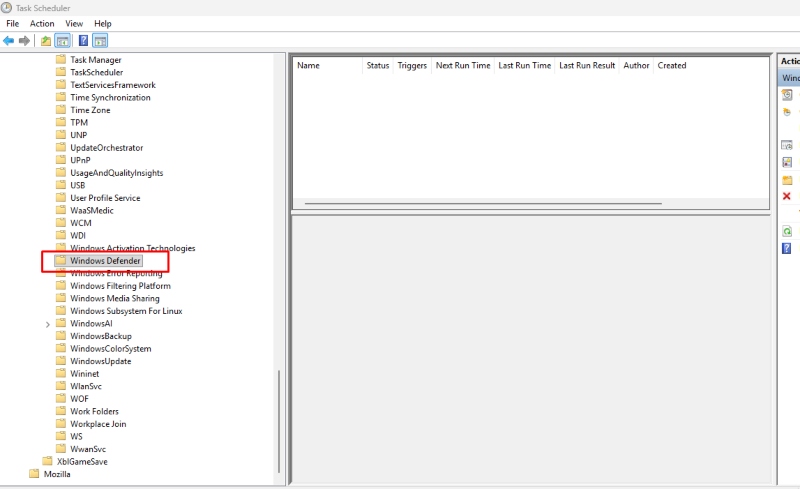 - Navigate to Task Scheduler Library > Microsoft > Windows > Windows Defender