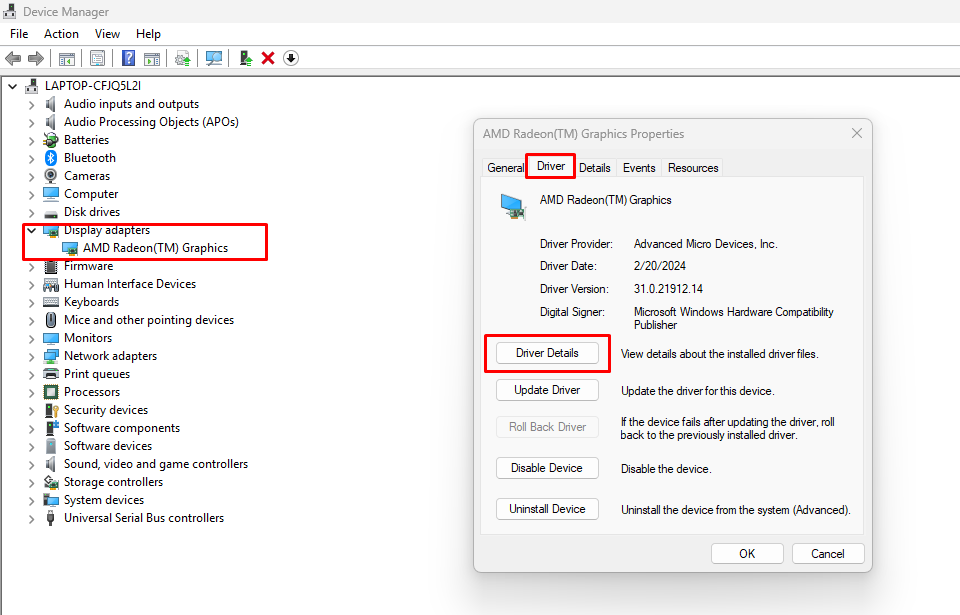 - Click Driver Details to view the driver files