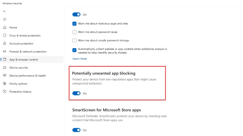Step 5: Enable “Check apps and files” and “SmartScreen for Microsoft Edge”