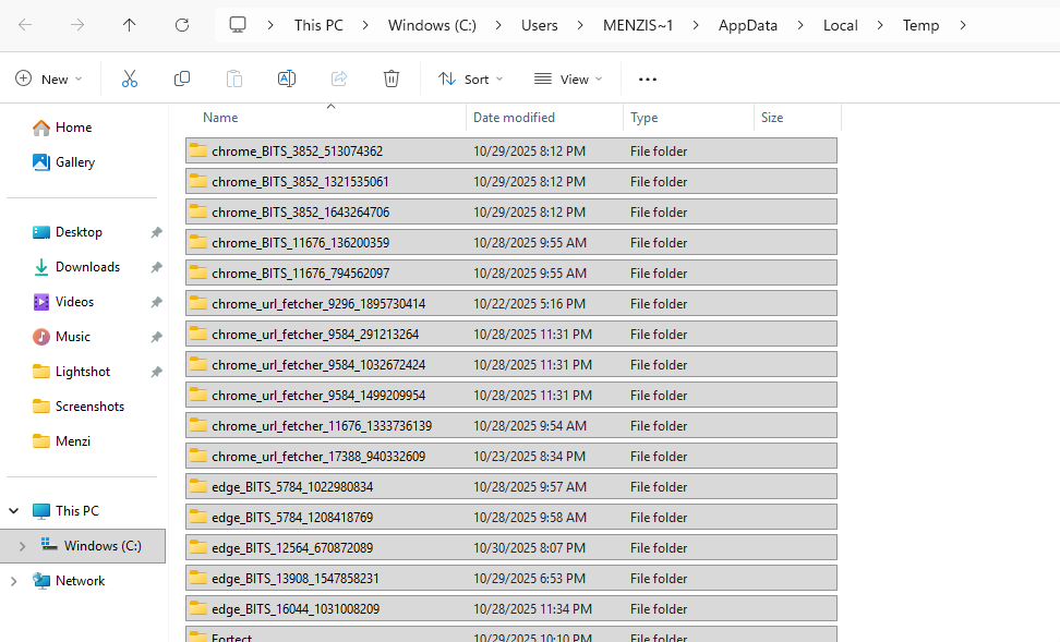 Step 3: Press Ctrl + A to select all files, then press Delete. Skip any files currently in use.
