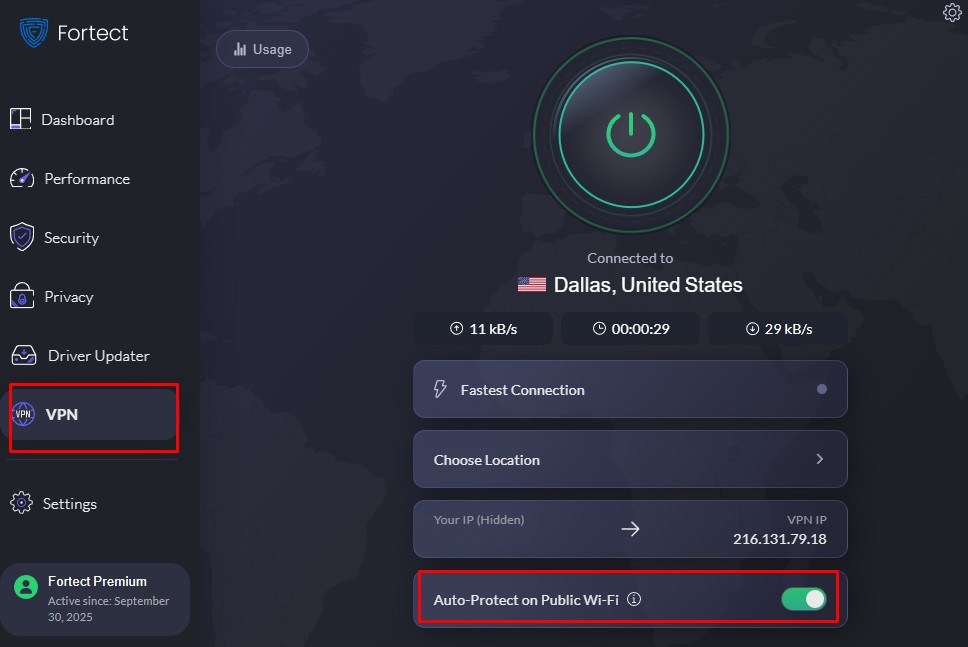 Fortect Premium also includes a built-in VPN feature with auto-protect on public wifi that encrypts your internet connection, making your data unreadable even if intercepted through an evil twin network. This VPN protection keeps your online activity private and secure anywhere in the world, providing comprehensive defense as part of Fortect’s complete system security solution.