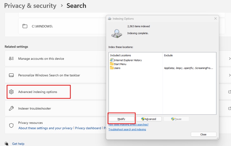 Windows Search with AI enhancement continuously indexes your files and learns from your behavior, consuming considerable disk and CPU resources.