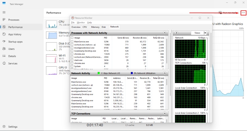 - Click “Open Resource Monitor” at the bottom